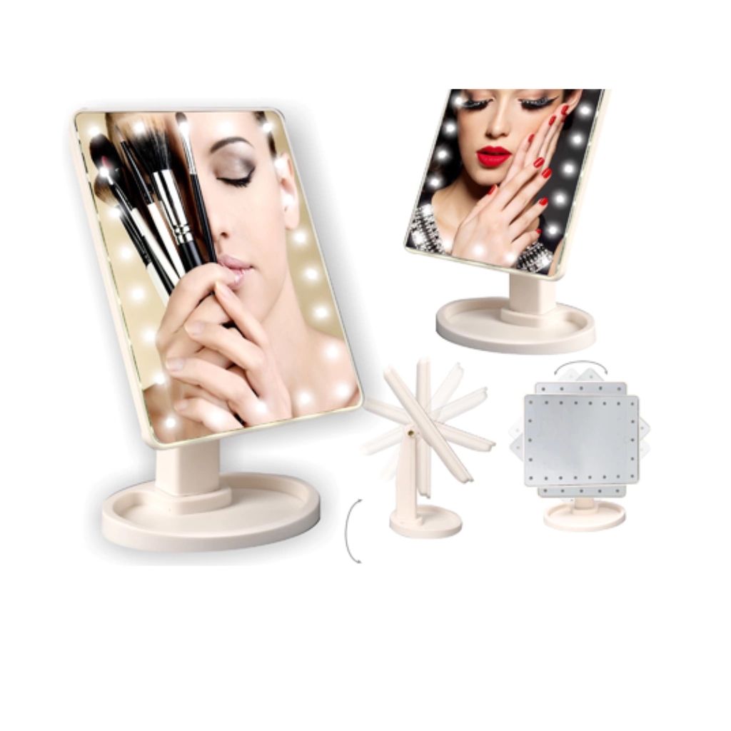 ESPEJO LED TACTIL CUADRADO CON BASE MAQUILLAJE USB 3 TONOS